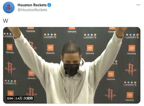 不管怎么说赢就是赢了,全队都很开心!火箭官推也是第一时间就晒出了一个主帅塞拉斯举双手视频来庆祝这波来之不易的胜利。赛后也是感慨发声“本场胜利是团队努力的结果。球员们不再担心自己的投篮。皮球的运转非常流畅,取得了28次助攻。谢天谢地,终于赢了一场。”