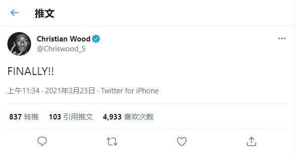 贡献19分4板的伍德简短地在推特上发声“终于!!”短短的几个字就知道火箭众将等待这场胜利有多久了,的确是太煎熬了!赛后的豪斯也是脸上挂满了笑容出席发布会,这场比赛实属难得,尽管不能改变火箭本赛季的命运,但总算是暂时解脱了。