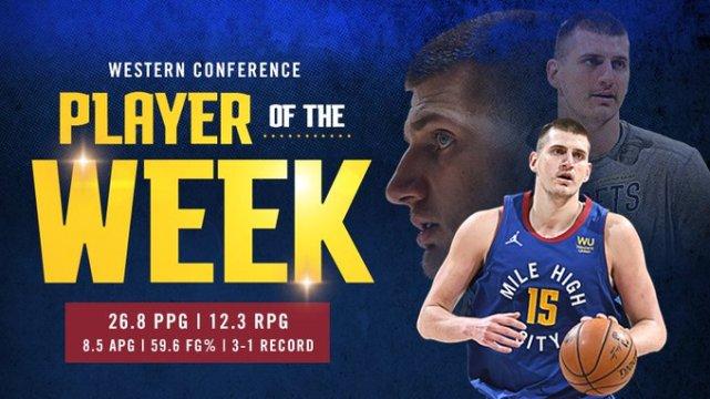 约基奇上周率领掘金打出3胜1负的战绩,场均26.8分12.3篮板8.5助攻,投篮命中率59.6%。这也是约基奇本赛季第三次当选周最佳,生涯第九次当选周最佳。约基奇成为队史上第二位单季三次当选周最佳的球员,此前,安东尼曾在2006-07赛季做到过。约基奇还差一次周最佳,就能追平安东尼(10次)的掘金队史纪录。