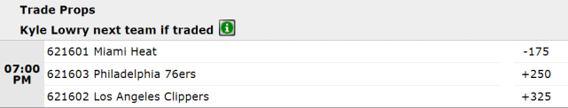 除了奥迪,热火还对猛龙的洛瑞很感兴趣。目前,出现在洛瑞交易下家赔率榜上的只有三支球队,热火(-175)领跑,费城(+250)和快船(+325)分列二三,他们也希望得到这位全明星后卫。