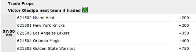 此前,美媒报道称,热火和尼克斯都有意得到奥拉迪波。最新赔率显示,奥迪交易下家赔率并列排名第一的正是热火和尼克斯,同为+200。另外,湖人也有可能加入奥迪争夺战,他们的赔率+350位居第三,排在第四和第五的是魔术与勇士。