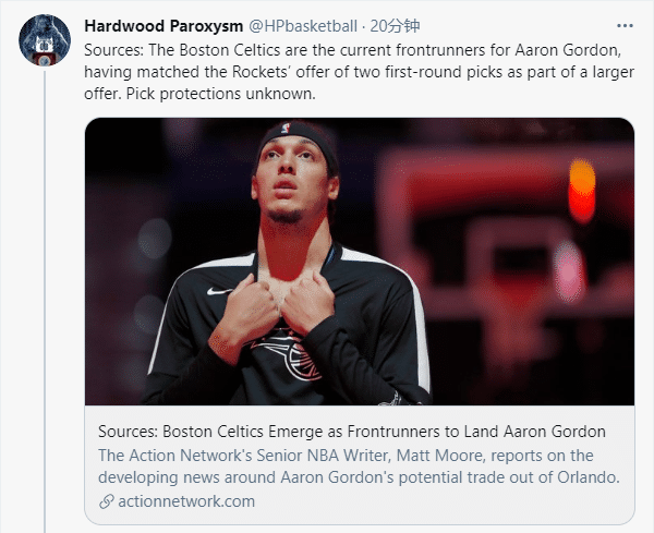 来源:JRS直播网03-23 10:51JRS直播网3月23日讯 北京时间3月23日,来自NBA名记Keith Smith报道,多位消息人士透露,戈登已经将凯尔特人列为最心仪的交易下家,而凯尔特人也已经将戈登列为他们的首要目标。随后记者马特·摩尔报道,凯尔特人目前领跑戈登争夺战,他们给出的筹码是2个首轮签。