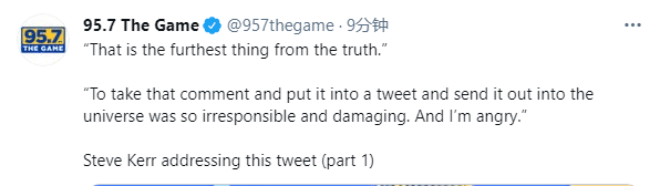 杜兰特回应科尔登上推特热搜引热议,对此勇士主教练科尔已经澄清,不仅表示这完全不符合事实,而且直言自己对外界的扭曲事实很生气。