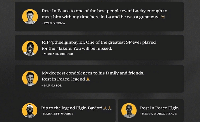 湖人上下悼念传奇贝勒!魔术师回忆往昔,巴斯库兹马和大加缅怀