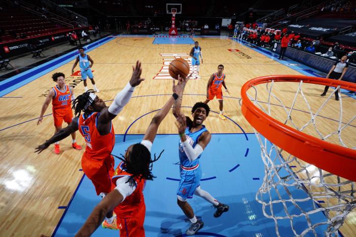 末节,雷霆一直保持微弱的领先优势,关键时刻,沃尔先是强突上篮惨遭大帽,最后一攻又是单打,外线强投三分直接打铁不中,最终火箭遗憾惜败,继续扩大队史连败纪录。