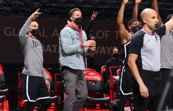 赛前,格里芬不仅加练弧顶和底角三分,而且热身时单手暴扣;篮网开局被奇才打出20-6攻势,随后篮网疯狂反扑,打到首节4分37秒,格里芬身披2号替补上场,现场响起掌声,篮网官方发推写道:欢迎来到布鲁克林,布雷克。