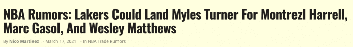 如今机会再次摆在眼前,湖人也正愁没有内线可用,那么是时候再零钱换整,进行梭哈了。于是美国知名体育媒体《FW》建议湖人打包送出哈雷尔、小加索尔和马修斯,从步行者换来特纳。