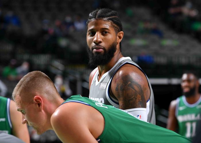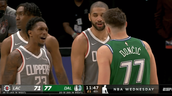 下半场,快船开场进攻不利,独行侠一度领先到13分,东契奇迎着乔治的防守投进大号三分,紧接着东契奇晃倒乔治,可惜这一次三分打铁不中;随后快船回应8-0缩小分差,打着打着乔治突然找回手感,连续命中两记三分,快船三节71-77落后独行侠6分。