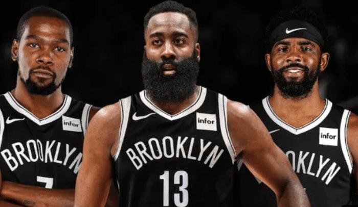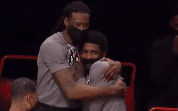 这个亲密的搂抱,也不免令人想起此前哈登和欧文的“亲密照”。当时哈登到队没有几场比赛,篮网也处于磨合的阵痛期,战绩比较糟糕。外界一度猜测,欧文和哈登两位一直以来都担当主要持球手的球员,会出现一定的嫌隙。但欧文在一场比赛中,从背后亲密地抱住了哈登。