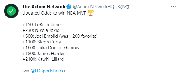 MVP最新赔率出炉!詹皇力压两大中锋重返第一,大帝下跌哈登无缘前五