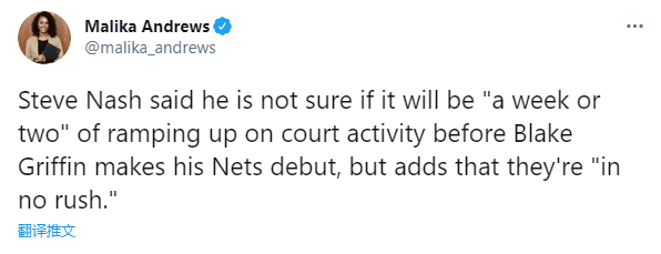 对于格里芬何时复出?纳什不仅透露他可能再缺席1-2周,而且直言篮网并不急于让格里芬复出;虽然格里芬已经参加队内合练,但他的篮网首秀还是一个未知数;即使格里芬直言自己膝伤早就痊愈,但考虑到他已经将近一个月没打比赛,篮网还是想通过训练让他找状态。