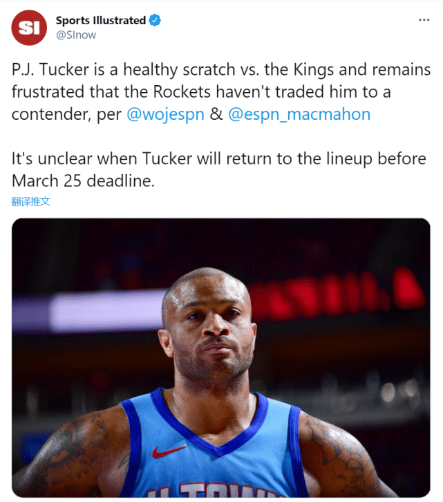 根据名记麦克马洪的报道,目前塔克非常沮丧,自己没有被交易到强队之中,并且表示在交易截止日前,并不清楚是否会为火箭出战了。