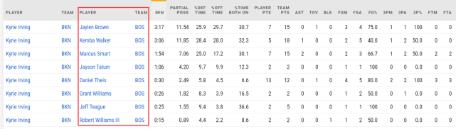 赛后的防守数据也说明了这一点,本场比赛,欧文在8位绿军球员面前有过出手,命中率都很不错。对泰斯时,5投4中;对杰伦-布朗时,4投3中;对斯马特时,3投2中;对蒂格和塔图姆各有1次出手,也都进了。