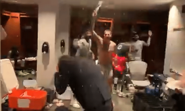 赛后,森林狼更衣室也显得一片欢腾。在主帅走进更衣室的时候,全队给他准备了冷水浴,球员们纷纷朝他浇水,庆祝这场来之不易的胜利。森林狼主帅芬奇显然也没有料到,被浇成了落汤鸡。虽然只是一场无关赛季形势的胜利,但经过了漫长的连败过后,这场胜利实在太过珍贵。