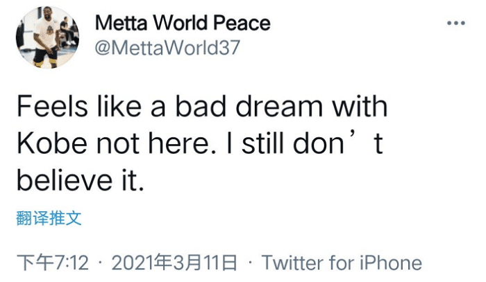 同时阿泰还表示自己在去年感染了新冠,他表示:“去年新冠和动荡暂时打断了我对科比离开感到的伤痛,我花了几天甚至几周的时间来真正地反思…实际上,中途我感染了新冠那真的很痛苦。到现在我还是不敢相信他不在这里了…”