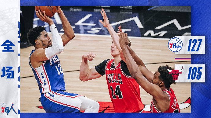 NBA常规赛公牛主场对阵76人,本场比赛76人的恩比德和西蒙斯双双缺阵,开场后两队你来我往互不相让,不过76人依靠整体发挥逐渐取得领先。第二节虽然公牛一度依靠马尔卡宁、怀特和拉文三人的三分追平比分。但哈里斯带领76人稳住节奏,上半场76人64-57领先公牛。下半场回来76人仍旧占据场上主动,虽然赛迪斯-杨频频砍分也只是帮助公牛没有被拉大分差,第四节开始科克马兹和霍华德更是带领轮换阵容打出一波高潮直接锁定胜局,最终76人轻松拿下公牛。