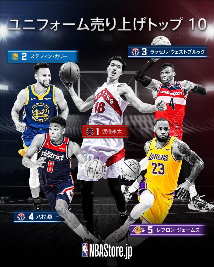 NBA球衣日本销量榜:渡边雄太高居榜首,八村塁第四,库里排第二!