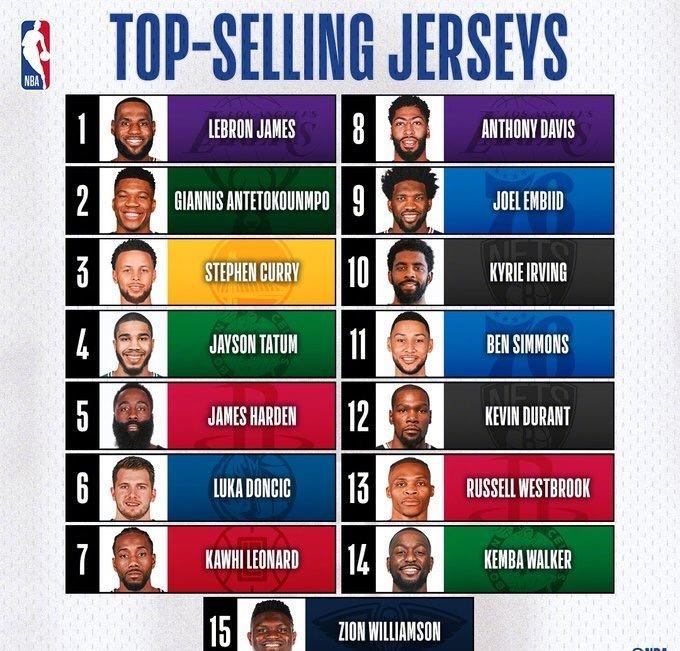 库里球衣的全球销量一直都是名列前茅的。在2015-2018的三个赛季中,拿到了官方球衣销量排行榜的三连冠,而在去年因伤报销无球可打的情况下,依然拿到了销量第三的成绩。这不仅归功于他出色的战绩和划时代的进攻模式,他本人的性格也是一个完美的球场模范偶像,受到了广大的青少年们的喜爱。3.拉塞尔-威斯布鲁克(华盛顿奇才)