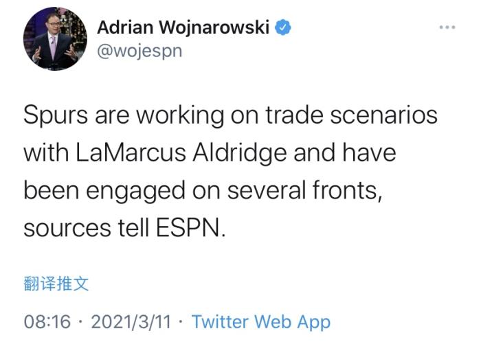 根据多家美国媒体的报道,马刺的主教练波波维奇已经明确表示阿德将要在短时间内离开马刺,而且他现在已经不会再为马刺出战了。而根据知情人士透露,这个决定是球队和球员之间共同商讨之后得到的,这也意味着阿德也希望自己被交易。很显然在马刺待了这么长时间后,阿德也忍不住寂寞了,他希望在自己仅剩不多的职业生涯里争取拿到总冠军,这也是很多全明星老将的共同想法。