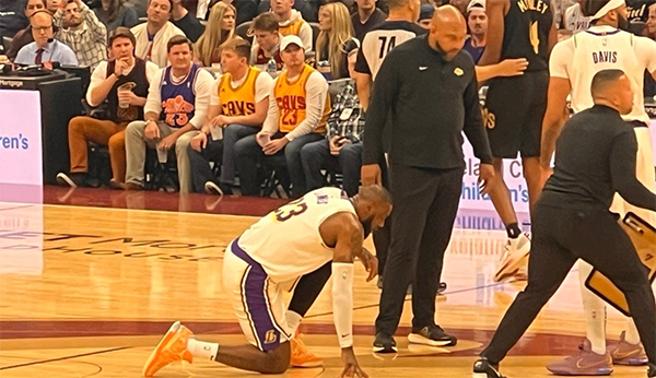 创纪录!詹姆斯战旧主22+6+6,流血单膝跪地,被打头引争议