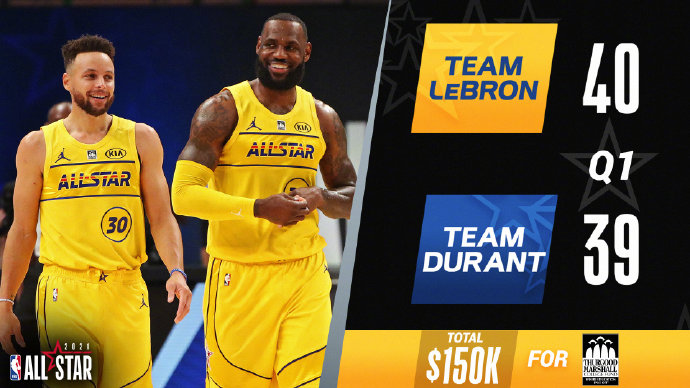首节,两支球队状态都很出色,欧文上来就是一记三分,随后字母哥和锡安各自上演扣篮直接拉起了比赛的氛围,刚刚荣膺三分王的库里同样外线连续命中三分。开局成为欧文和字母哥的对决,前者里突外投砍下球队前20分的里10分,字母哥则频频上演扣篮砍下球队前23分里的13分。暂停回来双方替补轮换齐齐上阵,哈登连中两记三分带队追分,而库里延续着三分手感一记超远LOGO三分予以回应,末段拉文和米切尔相继拿分将劣势追至1分,首节结束时,詹姆斯队40-39赢下首节争夺。