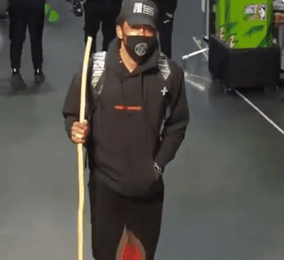 欧文亮相也十分抢镜,穿着一套运动装以及背着双肩包,拄着棍走进球馆,又拿着自己的“打狗棒”来了,篮网双巨真是太另类了。