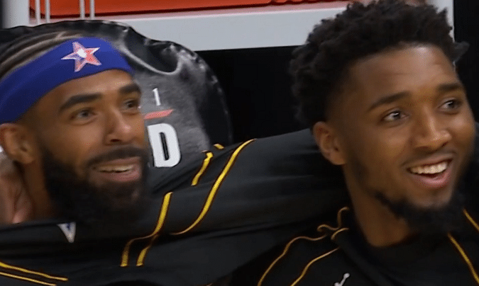 库里投出最后一个球完美绝杀,他自己也很清楚这个球就是绝杀球,所以进球后开始庆祝,而康利的表情也是亮了,他和自己的队友米切尔一起在关注着库里是否会投进这最后一个球,表情有些无奈,而米切尔则是满脸的期待,康利被库里绝杀。