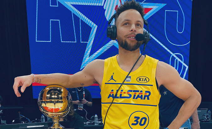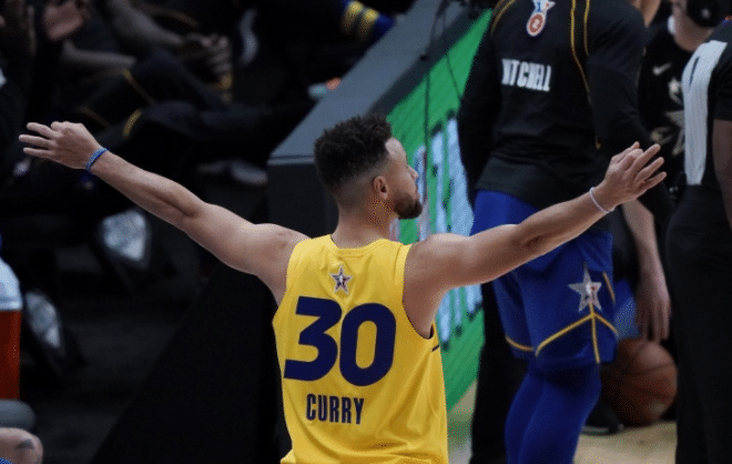 因伤退出全明星的浓眉哥直呼:“这个家伙@库里,简直就是作弊啊,哇!”