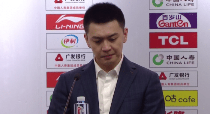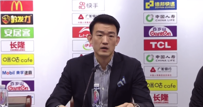 辽篮将帅在等了好一会才出现在发布会,杨鸣先到场,他示意带错人了,换人,让记者稍微等一下,随后杨鸣一人在现场愣神和看赛后数据统计。
