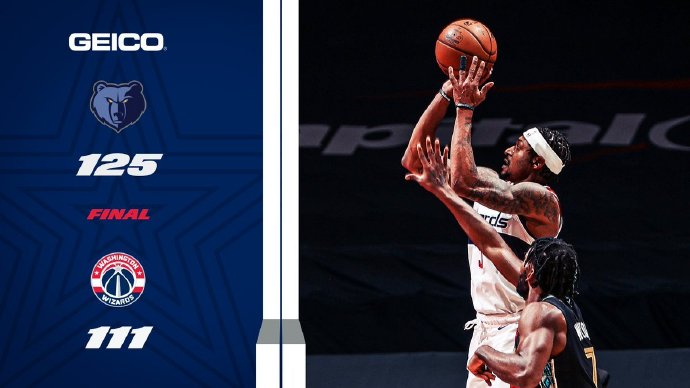 末节,奇才虽然占据上风但没能打出具有威胁的进攻高潮,分差始终维持在10分以上难以制造威胁。最终,灰熊125-111击败奇才拿下比赛。