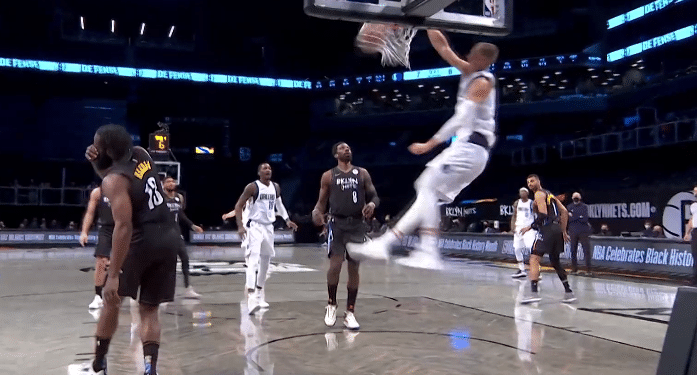一步过哈登!波尔津吉斯秀翻身暴扣,单节2送盖帽+身高差被热议