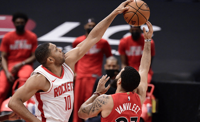 奥拉迪波被沃尔换下,随后沃尔主要控球,可惜的是火箭没有延续强大的气势反扑,猛龙的本布里等人连续砍分,瞬间分差又重新回到了两位数。