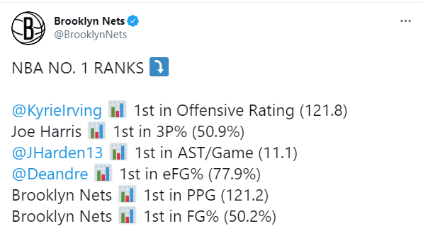 哈登得分和助攻同时抓,一招传球盘活全队,欧文担任主攻手,乔-哈里斯定点投射神准,主要是外线接球就投三分,再加上小布朗空切和小乔丹吃饼扣篮;如此以来,篮网打出全联盟最疯狂的进攻。