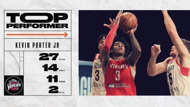 来源:JRS直播网02-26 16:16JRS直播网2月26日讯 北京时间2月26日,G联赛继续进行,火箭下属的毒蛇队124-113击败了目前排名G联赛第一的伊里湾鹰队。凯文-波特发挥出色,全场24中11,得到27分11篮板14助攻的三双数据,此外还有2次抢断和1次盖帽。波特成为了今年G联赛开战至今第一位拿下三双数据的球员。