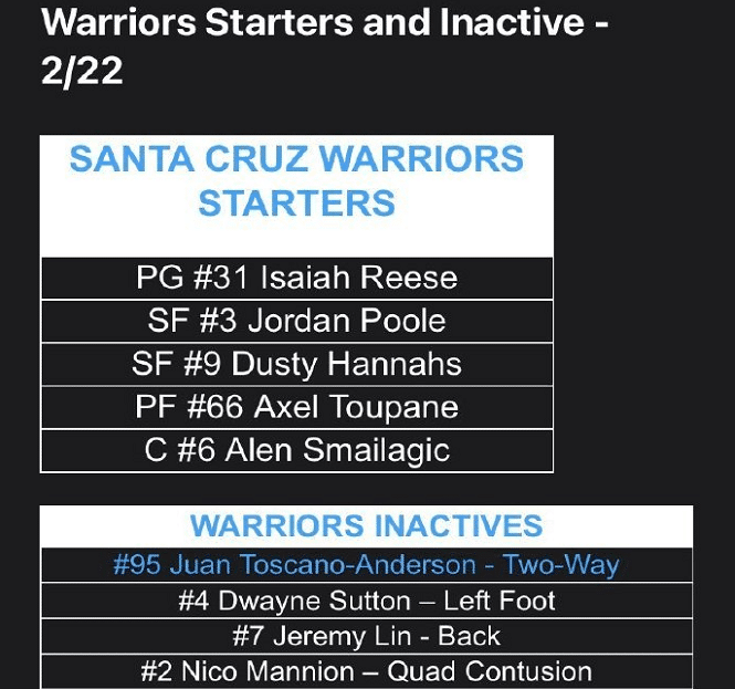 来源:JRS直播网02-23 15:44JRS直播网2月23日讯 今天已经取得了3连胜的圣克鲁兹勇士将会迎战温泉镇快船,这场比赛球迷们的关注点依旧是在林书豪的身上,希望可以看到他复出,但是非常可惜,林书豪再度缺阵,根据球队的伤病名单显示,林书豪仍然是背部伤势,而他也已经确认将缺席今天的比赛,这样林书豪本赛季已经缺阵了3场比赛,确实很无奈。