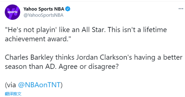 巴克利表示:“戴维斯本赛季打得不像一个全明星,这不是一个终身成就奖。”巴克利随后还表示:“在我看来,乔丹·克拉克森正在打出了一个非常出色的赛季,我会投票给他。”巴克利的话没有说完,他随后补充道:“在安东尼·戴维斯之前。”