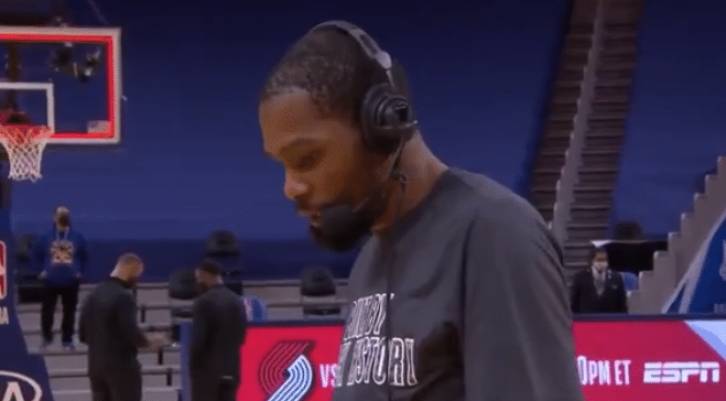 赛后杜兰特接受场边连线采访的时候,杜兰特被问到了4个问题: