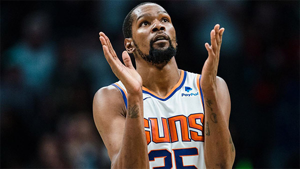 比赛正式开打,杜兰特身穿太阳35号战袍出战,进攻端依旧不可阻挡,招牌杀招太无解,随着本场至少拿到14分,杜兰特正式迎来破纪录时刻。