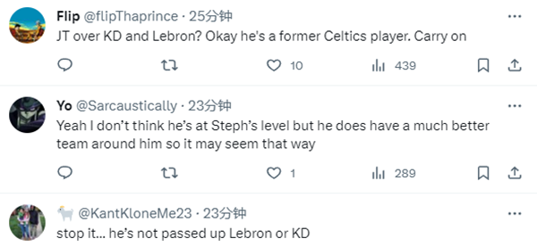 皮尔斯的言论引争议,有球迷表示塔图姆已经超越杜兰特和詹姆斯?好吧,他是前凯尔特人球员,继续吧;还有球迷表示我认为他没有打成库里的水平;更有球迷表示:别说了,他没有超越勒布朗和KD。