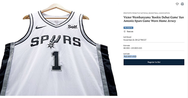 76.2万美元!文班亚马首秀1号球衣拍出天价 创历史新秀最高纪录