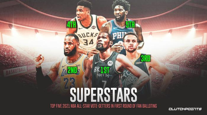 不考虑球员和媒体投票,从目前球迷票选结果来看,东部全明星首发是杜兰特、恩比德、比尔、字母哥和欧文,哈登无缘首发;西部首发是詹姆斯、库里、东契奇、小卡和约基奇,浓眉无缘首发。