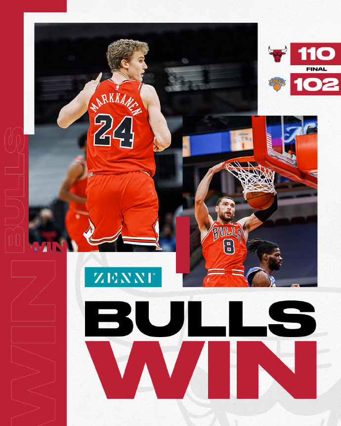 公牛110-102险胜尼克斯 马尔卡宁30+5 兰德尔23+11+7