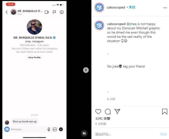 来源:JRS直播网01-25 15:06JRS直播网讯 北京时间1月25日,一位网友晒出了爵士球员米切尔隔扣奥尼尔的P图照,NBA传奇很不开心,大鲨鱼直接私信这位网友附文:闭上你的臭嘴!