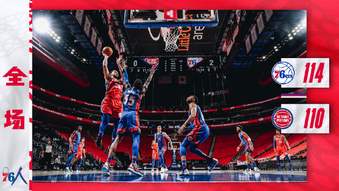 76人114-110险胜活塞 恩比德33+14 西蒙斯20+9+7
