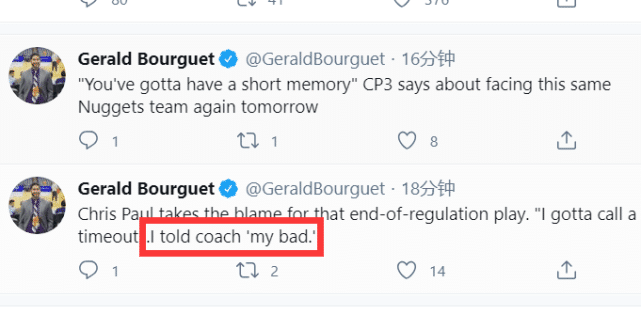 此役双方打得非常激烈,保罗上半场14助攻一度率队领先到14分。不过下半场掘金猛烈反扑,双方一直鏖战到最后阶段。最后时刻,巴顿中投不中,太阳抢下篮板。此时本有2.4秒时间剩余,保罗有机会叫出暂停布置最后一攻。不过保罗没有这样做,而是直接后场出手三分不中。随后的加时赛,太阳最终落败。
