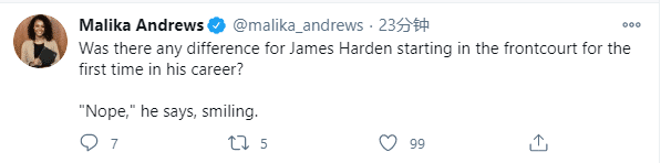 赛后哈登也表示进攻没问题,防守是篮网输球的最大原因,必须更多参与进来,并且提出改变的方法——沟通、努力以及扩大防守的领域;对于生涯首次打4号位,哈登面带笑容,表示这和以前没什么不同。