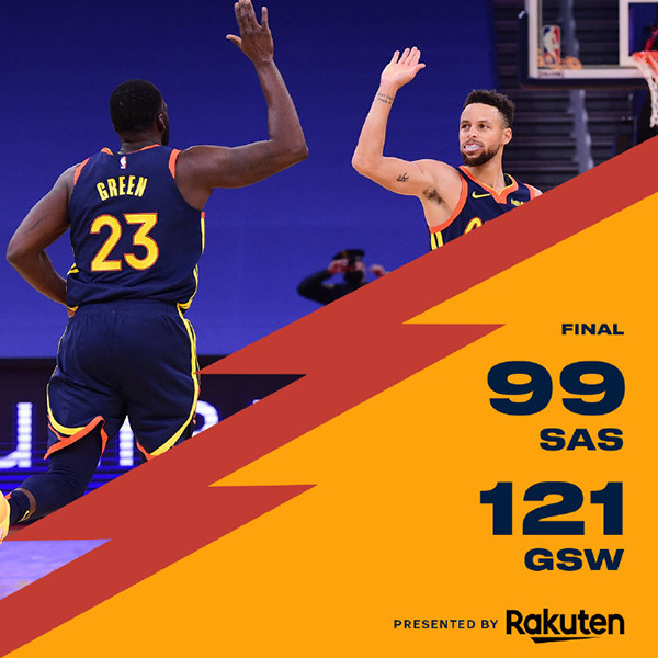 勇士121-99轻取马刺 库里26+11+7 怀斯曼20+6