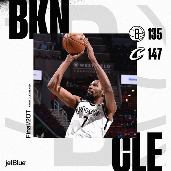 第二个加时,塞克斯顿突然发飙,一人包揽15分,包括4个三分,骑士以145-131领先。尽管随后篮网也有表现,但最终篮网以135-147不敌骑士。