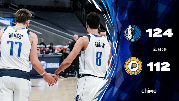 独行侠124-112击败步行者 铂金27+13 东契奇13+12+12