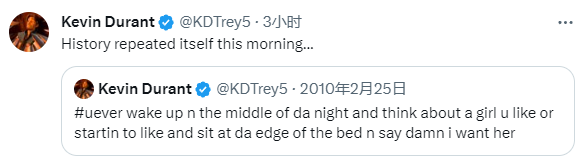 时隔13年,杜兰特突然转发这条推文,并且写道:今天晚上(凌晨)历史重演了…